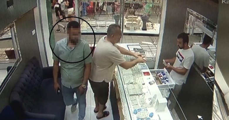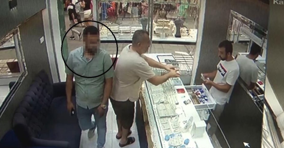 Öte yandan bir dolandırıcının sahte altınları tarihi Kemeraltı Çarşısı'ndaki kuyumcuya sattığı anlar da kameralara yansıdı. Görüntülerde bir kişi, 14 ayar olduğu yalanıyla kolyeyi satmak istiyor. Bu sırada tezgahta bulunan kuyumcu çalışanı, kolyeyi önce tartıyor, sonra da gerçek olup olmadığını anlamak için mihenk taşında test ediyor. Kuyumcu çalışanı daha sonra parayı dolandırıcıya teslim ediyor. Tecrübesiz tezgahtarı gözüne kestiren dolandırıcı, bir gün sonra kılık değiştirip yine aynı kuyumcuya geliyor. Gözlük takan ve bir gün önce dolandırdığı tezgahtarın yüzüne bakmamaya çalışan dolandırıcı, yine kolye satmak istediğini söylüyor. Aynı şekilde benzer kolyeyi mihenk taşında deneyip altın suyunda test eden tezgahtar, yine dolandırıcının oyununa gelerek parayı teslim ediyor. Üst üste iki gün dolandırıcıya 30 bin liranın kaptırıldığı anlar ise iş yerindeki kameralara yansıyor.