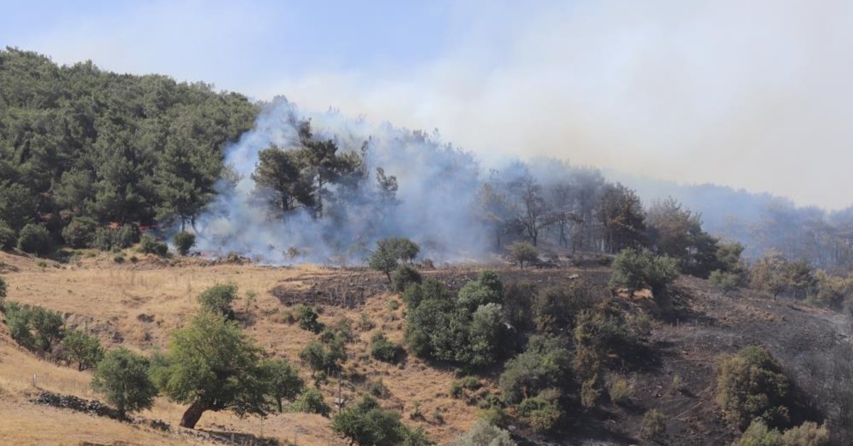 Yangın saat 13.37 sıralarında Beşyol Mahallesi'nde bulunan ormanlık alanda çıktı. Henüz belirlenemeyen bir sebeple çıkan yangına İzmir Orman Bölge Müdürlüğü ekipleri, 6 uçak, 10 helikopter, 32 arazöz, 8 su ikmal ve 4 yer ekibi ile müdahale ediyor.