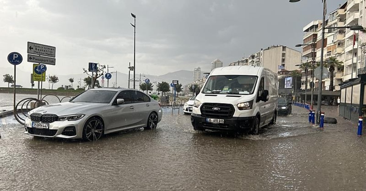 İzmir kent merkezinde sağanak hayatı olumsuz etkiledi.
