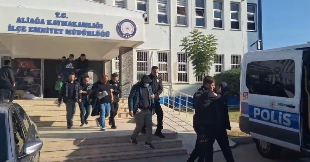 Emniyetteki işlemlerin ardından, Aliağa Sulh Ceza Hakimliğine tutuklama talebiyle sevk edilen 33 şüpheliden 23'ü tutuklandı, şüphelilerden 9'u adli kontrol şartıyla, 1'i de mahkemeden serbest kaldı.