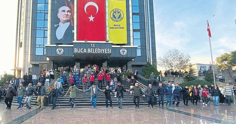 grev çanlarının çaldığı Buca Belediyesi'nde işçilerin uzlaşıncaya kadar greve devam edecekleri kaydedildi.