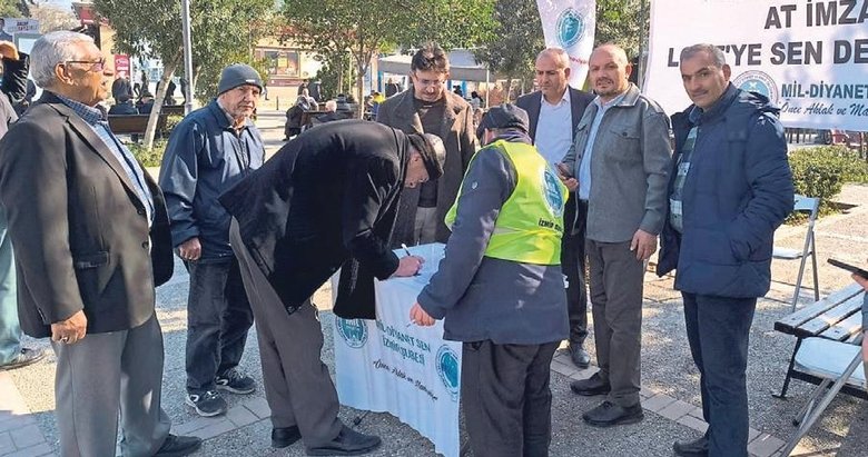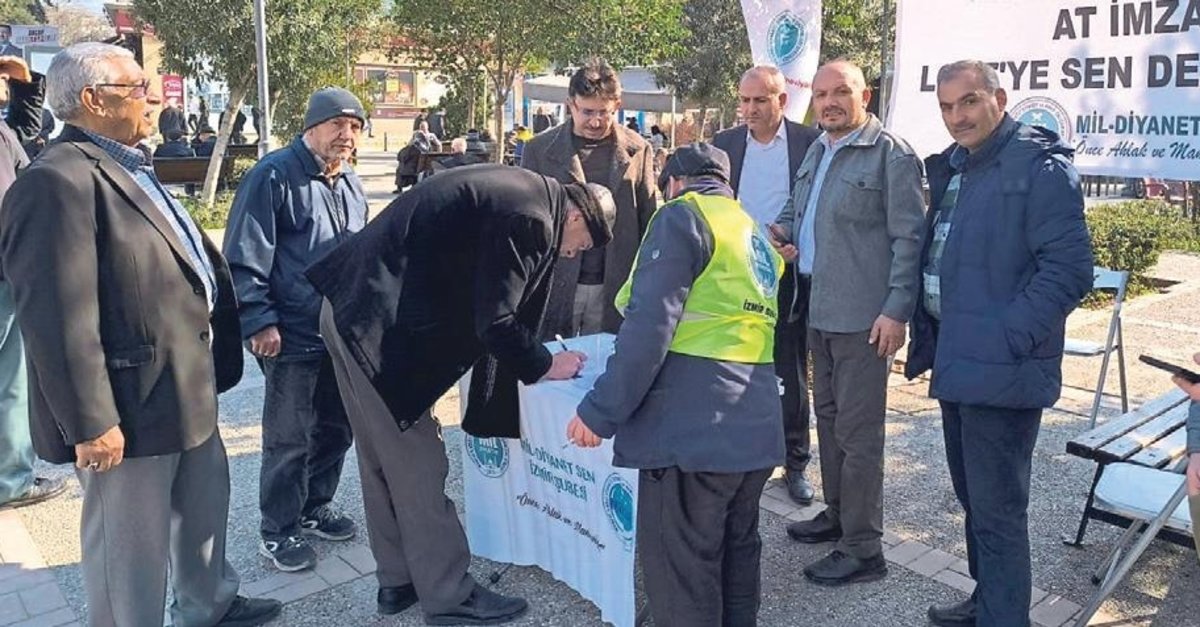 İZMİR'DE toplanan Manevi İlkeli Liyakatli Diyanet ve Vakıf Çalışmaları Sendikası (Mil-Diyanet Sen) üyeleri, LGBT derneklerinin kapatılması için imza kampanyası başlattı. Mil-Diyanet Sen İzmir Şubesi