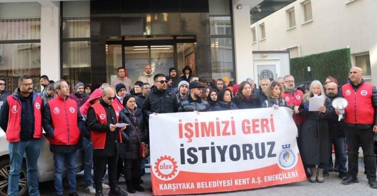 İşçiler adına söz alan Elçin Cinğ, "Karşıyaka Belediyesi Kent A.Ş bünyesinde yıllardır emek veren, alın teriyle geçimini sağlayan çalışanlardık. Hiçbir haklı gerekçe olmaksızın haksız ve hukuksuz bir şekilde İş Kanunu 25/2 maddesi gerekçe gösterilerek SGK KODU 26 ve 46 ile işten çıkarıldık. İşverenimiz olan Karşıyaka Belediyesi bize güveni kötüye kullanma, hırsızlık yapma veya meslek sırlarını açıklama gibi suçlamalar yöneltti. Bu sebeple işten çıkarılmamızın ağır sonuçları oldu. Kıdem ve ihbar tazminatımızı alamadık, işsizlik maaşına başvurma hakkımızdan olduk ve SGK kayıtlarımıza 'ahlak ve iyi niyet kurallarına aykırı davranış' nedeniyle işten çıkarıldığımız işlendi. Bu durum, yeni bir iş bulmamızı da zorlaştırıyor. Bu karar keyfi ve haksız bir şekilde alınmıştır" diye belirtti.
