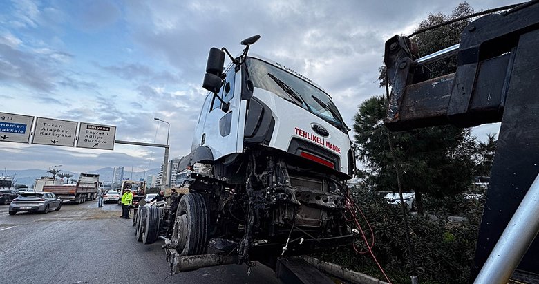 İzmir'in Bayraklı ilçesinde korkunç bir kaza meydana geldi. Kaza, geçtiğimiz günlerde Altınyol Melez Deltası yakınında gerçekleşti. Bayraklı yönünden Konak yönüne giden 35 BTH 423 plakalı mazot yüklü tanker, sürücüsünün kontrolünü yitirmesi sonucu bariyere çarpıp karşı şeride geçerek Fikrek B. yönetimindeki 35 T 7658 plakalı taksiye çarptı.