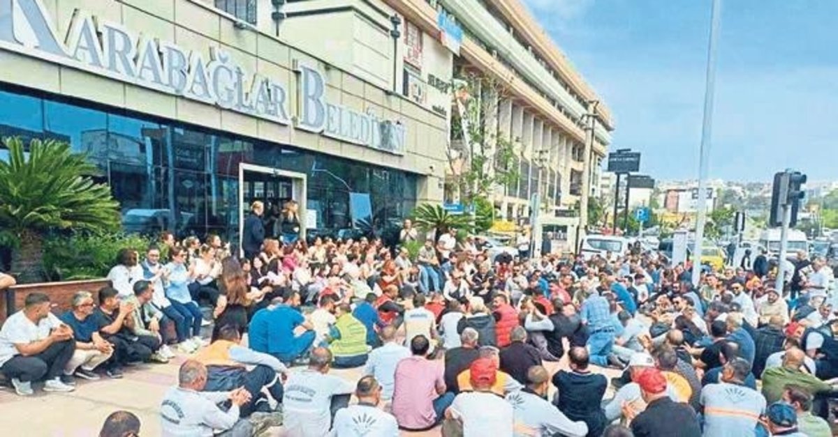 İşçilerin, eksik yatırılmış bir aylık maaşı, iki adet gıda fişi ve geriye dönük alacakları bulunuyor. Sendika, maaşın kalanının ve en az bir adet gıda fişi yatırılmasını isterken, ödeme yapılana kadar iş başı yapılmayacağını duyurdu. Karabağlar Belediye Başkanı Helil İnay Kınay, "13 Mayıs günü İller Bankası'ndan gelen ödemeye istinaden çalışma arkadaşlarımızın maaşının yatırılacağını sendika ve işyeri temsilcilerine bildirdik" ifadelerini kullanmıştı. Başkan Kınay'a yanıt veren sendika ise; "Belediye Yönetimi tarafından kamuoyuna yapılan değerlendirmede bir aylık bir gecikme olduğu belirtilmiş, alacaklarımız Mart ayından bugüne kadar devam etmiştir. Ayrıca geriye dönük alacaklarımız ödenmemiştir. Belediye Yönetimi ile yapılan görüşmeler sonucunda geçmiş aylardan kalan alacakların ya tek seferde ya da peyder pey 12 mayısa kadar ödeneceği sözü gerçekleşmemiştir. Yönetim kurulu ve temsilciler ile beraber iş durdurma da ra yapılmayanıt kararı alınmıştır" demişti.