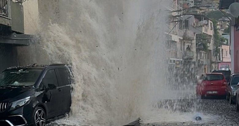 Son dakika İzmir haberleri... İzmir'in Konak ilçesinde içme suyu isale hattında patlama meydana geldi. Patlamanın etkisiyle park halindeki 4 otomobil hasar gördü.