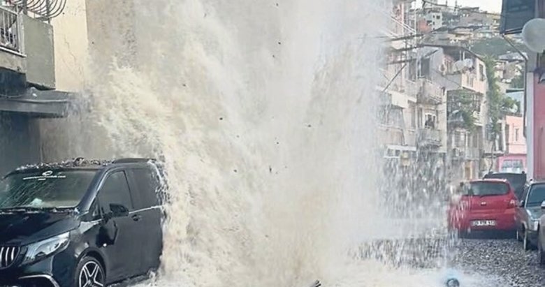İZMİR Konak'ta ana su borusunun patlaması nedeniyle çok sayıda araç, ev ve iş yerinde hasar oluştu. Oluşan gürültü sonrası manzara gören vatandaşlar, ilk gördüklerinde su değil bomba patladığını sandıklarını söyledi. 19 Mayıs Mahallesi 737 Sokak'ta İzmir Su ve Kanalizasyon İdaresi Genel Müdürlüğüne (