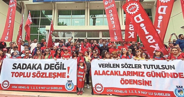 BELEDİYENİN bütçesi ile ancak bu rakamları verebileceklerini söyleyen Tugay, "Bunun iyi bir teklif olduğuna inanıyorum" dedi. İzmir Büyükşehir Belediyesi'ne ait İZSU, İZDOĞA, İZBETON ve İZULAŞ'ta örgütlü Türk-İş'e bağlı Belediye İş Sendikası İzmir Şubeleri ile o dönemin İzmir Büyükşehir Belediye Başkanı Tunç Soyer arasında yerel seçimlere 5 gün kala TİS imzalandığını hatırlatan Tugay, DİSK'le bu anlaşma üzerinden masaya oturduklarını kaydederek "Grev yapılmasını istemiyoruz. Grev yapılmaması için yapabileceğimiz en iyi teklifi yaptık. Bize emsal olarak seçimden 5 gün önce önceki belediye başkanının yaptığı sözleşmeyi gösteriyorlar. Onun sorumsuzca bir davranış olduğunu söyledim. Aynı sorumsuzluğu ben yapmayacağım, özür dilerim" dedi.
