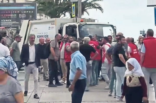 ÇÖP TOPLAYAN BAŞKAN GREVCİLER İLE TARTIŞTI