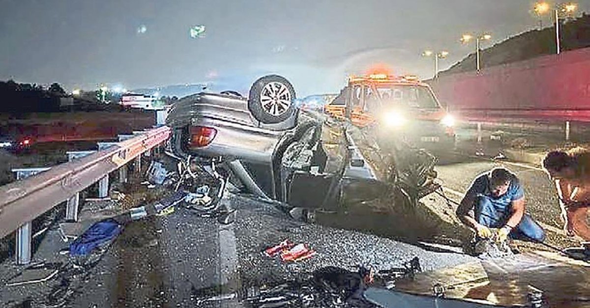 Kazada kontrolden çıkarak karşı şeride geçerek Bornova yönünden Kemalpaşa istikametine giden Haydar Aslan yönetimindeki 34 KSP 882 plakalı otomobile çarptı. Çarpışmanın etkisiyle Emir Elçi'nin otomobili takla atarak metrelerce sürüklenirken, Aslan'ın kullandığı otomobil ise bariyerlere çarptı. Kaza sonrası yoldan geçen diğer araçların sürücüler durumu 112 Acil Çağrı Merkezi'ne bildirdi. Alınan ihbar üzerine olay yerine itfaiye, sağlık ve polis ekipleri sevk edildi. Olay yerine gelen sağlık ekipleri, sürücü Haydar Aslan ile eşi Ecemnur Aslan'ın sıkışarak yaşamını yitirdiğini belirledi. Kazada ağır yaralanan Aslan ailesinin 5 aylık bebeği Veysel Ege Aslan. ambulansa alınarak Ege Üniversitesi Tıp Fakültesi Hastanesi'ne, diğer otomobil sürücüsü Emir Elçi ise Bornova Türkan Özilhan Devlet Hastanesi'ne kaldırıldı. Takla atan otomobilin sürücüsü Emir Elçi hastanede yapılan ilk müdahalesinin ardından Bayraklı Şehir Hastanesi'ne sevk edildi. Emir Elçi ve Veysel Ege Aslan'ın hayati tehlikesinin bulunduğu öğrenildi.