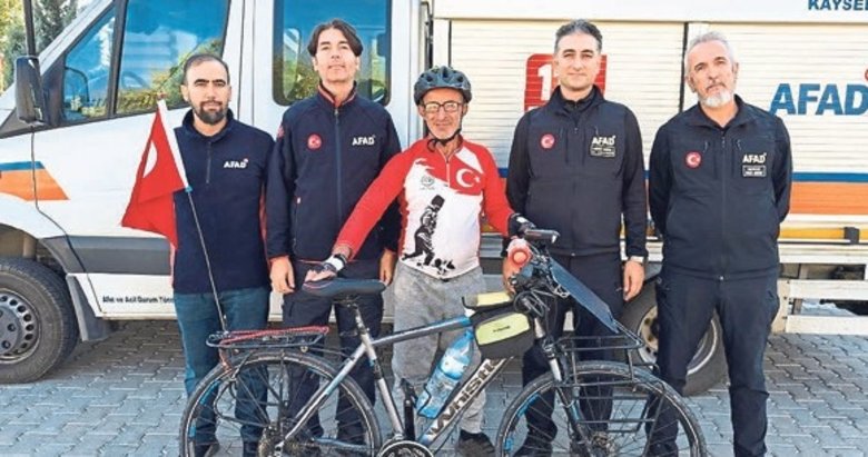İZMİR'DEN yola çıkan gezgin Orhan Kotluk, 'Asrın Felaketi' olarak nitelendirilen 6 Şubat depremlerinde hayatını kaybeden vatandaşları anmak için pedallıyor. Yolculuğunda Kayseri'ye ulaşan Kotluk, depremin merkez üssü Kahramanmaraş'ta yolculuğuna son verecek. Yolculuğu hakkında bilgi veren Orhan Kotluk, "AFAD birimlerine teşekkür ediyorum. AFAD İl Müdürlüğü'ne, İzmir AFAD İl Müdürlüğü'ne, yolda yol güvenliğini sağlayan emniyet teşkilatına... Destek olan herkese sonsuz teşekkür ederim" dedi.