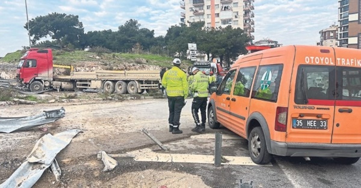 İZMİR'İN Buca ilçesinde kontrolden çıkan bir tır, bariyerleri ve orta refüjü yıkarak karşı şeride geçti. Şans eseri başka bir aracın karışmadığı kaza anı, bir otomobilin araç kamerasınca anbean görüntülendi. Kaza, İzmir Çevre Yolu Buca Batı girişi mevkiinde meydana geldi. Edinilen bilgiye göre, E.D. idaresindeki 45 AHE 339 plakalı tır, kontrolden çıkarak önce yol kenarındaki demir bariyerlere ardından da orta refüjü yıkarak karşı şeride geçti. Olay yerine gelen sağlık ekiplerince yapılan kontrolde, sürücü E.D.'nin kazayı hafif yaralı olarak atlattığı belirlendi. Dalgıç, olay yerindeki ilk müdahalesinin ardından ambulansla Buca Seyfi Demirsoy Eğitim ve Araştırma Hastanesi'ne kaldırıldı. Kazayla ilgili inceleme başlatıldı.