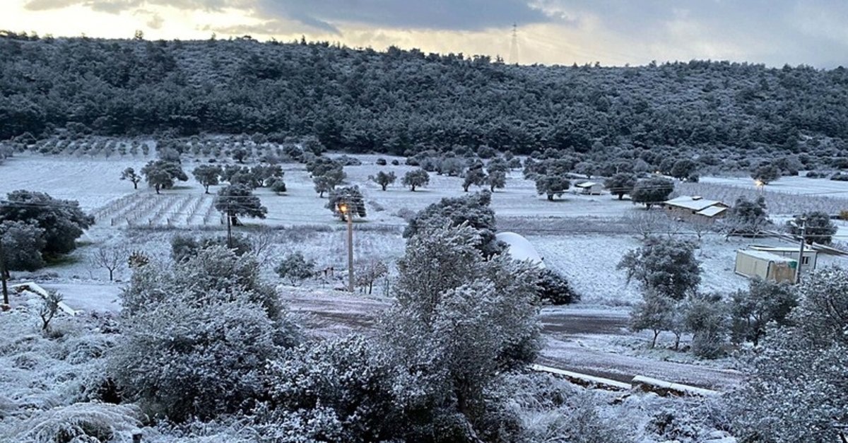 Son dakika İzmir haberleri... İzmir'in Urla ilçesinin yüksek kesimlerinde kar yağışı etkili oldu.