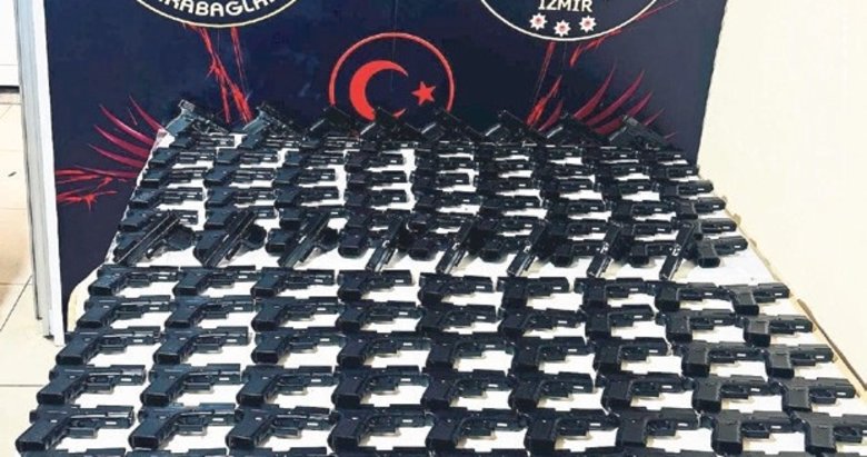 İZMİR'İN Karabağlar ilçesinde polis ekipleri tarafından bir ikamete düzenlenen operasyonda, güvercin kümesine gizlenmiş 124 adet ruhsatsız tabanca ve çok sayıda silah parçası ele geçirildi. Olayla ilgili 3 şüpheli gözaltına alındı. İstihbari çalışmaların ardından harekete geçen ekipler, belirlenen adrese operasyon düzenledi. İkametin giriş katında bulunan güvercin kümesinde yapılan aramalarda; 124 adet ruhsatsız tabanca, 76 adet tabanca sürgüsü, 28 adet tabanca namlusu ile 39 adet icra mili ve yayı ele geçirildi. Operasyon kapsamında U.K. (41), A.K. (41) ve E.Y.K. (19) yakalanarak gözaltına alındı.