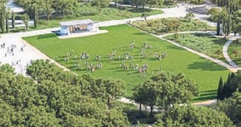 İZMİR Büyükşehir Belediyesi, Kültürpark'taki eski lunapark alanında yeşil dönüşüm başlattı. Doğayla bütünleşen ve çayırla kaplı bir etkinlik alanı olarak tasarlanan bölgede kurulacak Zeytin Sahne, özgün tasarımıyla kentin yeni simgelerinden biri olacak. Atlas Pavyonu'nun yanında bulunan 4 bin 300 metrekarelik beton alanın ağaçlandırılmasının ardından lunapark alanının da dönüşümü için çalışmaların başladığını söyleyen Tugay, "Kültürpark'ı kentlilerin daha keyifle kullandığı bir yaşam alanına adım adım dönüştürüyoruz" dedi.