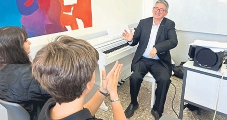 İZMİR'DEKİ Hayrettin Duran Anadolu Lisesi'nde görev yapan müzik öğretmeni Onur Özbay (45), geçirdiği beyin kanaması sonrası yaşadığı sağlık sorunlarına rağmen müzikten kopmadı. Hem üretmeye devam eden hem de öğrencilerine müziği sevdirip ilham kaynağı olan Onur Özbay, "Onların başardığını görmek beni gururlandırıyor. Benim yapamadıklarımı onların yapmasıyla heyecanlanıyorum. Çünkü engel sadece zihnin içinde" dedi.