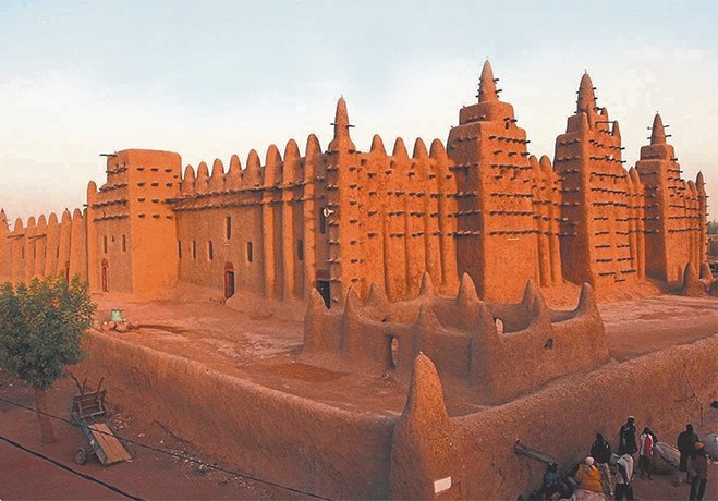 1907 yılında yapılan bu cami dünyanın en büyük çamur yapısı. Neredeyse tamamına yakını güneşte kurutulan harç ve sıva malzemesinden yapılmış bir yapı ve 100 yıldan fazla bir süredir ayakta. 1988 yılında UNESCO tarafından kültür mirasları listesine alınan cami, benzersiz bir mimariye sahip ve türünün en önemli örneği olarak görülüyor.