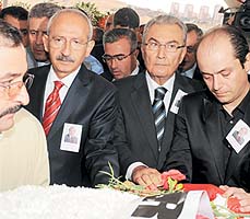 Radyo ve Televizyon Üst Kurulu (RTÜK) Üyesi Mehmet Dadak'ın cenazesi dün toprağa verildi. Karşıyaka Mezarlığı'ndaki camide düzenlenen törene, Dadak'ın eşi Gülten Dadak, ailesi ve yakınlarının yanı sıra CHP Genel Başkanı Kemal Kılıçdaroğlu, Genel Başkan yardımcıları Hakkı Suha Okay, Umut Oran ve Gürsel Tekin, Grup Başkan Vekili Akif Hamzaçebi, CHP eski Genel Başkanı Deniz Baykal ve bazı milletvekilleri ile RTÜK Başkan Vekili İlhan Yerlikaya ve üst kurul üyeleri katıldı. Kılıçdaroğlu ve parti yöneticileri, tören öncesinde Dadak'ın ailesine taziyelerini iletti. Dadak'ın cenazesi, öğle namazının ardından kılınan cenaze namazı sonrasında Karşıyaka Mezarlığı'nda toprağa verildi. Defin alanına Baykal da gitti.