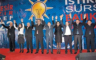 Balıkesir Gala Kültür ve Yaşam Merkezi'nde dün yapılan tanıtım toplantısına, AK Parti İl Teşkilatı Yönetim Kurulu üyeleri, ilçe ve belde başkanları, belediye ve il genel meclis üyeleri ile partililer katıldı. Tek tek kürsüye çıkan milletvekili adayı Genel Başkan Yardımcısı Edip Uğur, Cemal Öztaylan, Tülay Babuşçu, Ali Aydınlıoğlu, Mehmet Akif Okur, Mehmet Ali Karatan, Ekrem Yavaş ve Hilal Demirözer kendilerini tanıttı ve mesajlar verdi. 12 Haziran'da yapılacak genel seçimlere "8'de 8 sloganı" ile hazırlandıklarını belirten İl Başkanı Mahmut Poyrazlı, "AK Parti, Balıkesir'de 8 milletvekili çıkartarak birinci parti olacak. AK Parti, 8 yıllık iktidarı döneminde Türkiye ve Balıkesir'e önemli hizmetler yaptı. Genel Başkanımız ve Başbakanımız Erdoğan'ın da söylediği gibi, partimizin hedefi 2023 yılında Türkiye'yi ekonomik olarak en güçlü ülkeler arasında ilk sıralara sokmaktır. Biz de Balıkesir'i ekonomik ve sosyal olarak Türkiye'nin en iyi illeri arasına sokacağız" dedi.