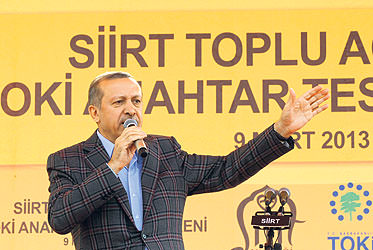 Başbakan Tayyip Erdoğan, Kürt, Türk, Laz, Çerkez, Arap, Süryani ayırt etmeden tüm kesimlere eşit mesafede olduklarını belirterek, "Biz etnik milliyetçiliğe, bölgesel milliyetçiliğe karşıyız. Türk'ü de Kürt'ü de Arap'ı da seviyoruz. Ben sevmesem Siirt'ten bir Arap kızıyla niye evleneyim. Bu duruşumun en açık ispatıdır" dedi. Siirt'te TOKİ tarafından düzenlenen 77 milyon lira değerinde 30 tesisin toplu açılışı ve yoksul vatandaşlar için yapılan 256 konutun anahtar teslim törenine eşi Emine Erdoğan'la birlikte katılan Erdoğan, meydanda toplanan yüzlerce kişiye çözüm sürecini anlattı. Şu mesajları verdi: