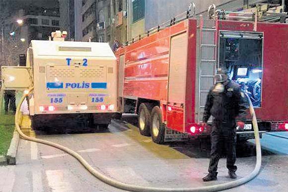 Gezi olaylarında yaralanan 15 yaşındaki Berkin Elvan'ın ölümünün ardından İzmir'de binlerce kişi önceki akşam Alsancak'ta eylem yaptı. Eylem sırasında göstericiler birçok işyeri ve araca zarar verirken polis, eylemcilere yine TOMA'larla müdahele etti. Bu sırada su ihtiyacı duyan TOMA'ların yardımına Büyükşehir Belediyesi'ne bağlı itfaiye aracı koştu. Cumhuriyet Meydanı'na gelen itfaiye araçlarından su alan TOMA'lar, göstericilere tazyikli suyla müdahele etmeyi sürdürdü.