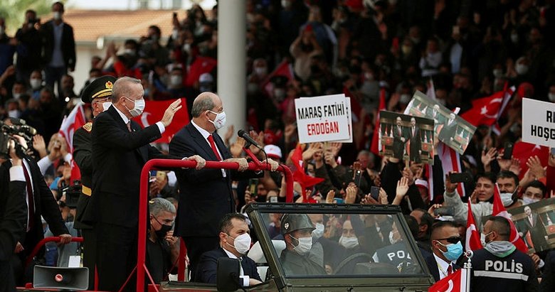 Başkan Recep Tayyip Erdoğan, MHP lideri Devlet Bahçeli ile birlikte kuruluşunun 37. yıldönümünde Kuzey Kıbrıs Türk Cumhuriyeti'ne günübirlik bir ziyaret gerçekleştirdi. İlk olarak Lefkoşa Atatürk Anıtı'ndaki törene katılan Erdoğan, daha sonra katıldığı Dr. Fazıl Küçük Bulvarı'nda düzenlenen geçit töreninde şunları söyledi: