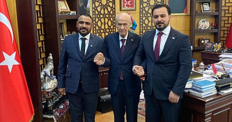 Suriye davasına verdiği destek için şükranlarımızı arz ettik" dedi. Genel merkezde gerçekleşen kabulde Devlet Bahçeli, Suriye Türkmenlerinin saha ve siyasi durumlarını ve gelecekleri ile ilgili kaygılarının üzerinde fikir alışverişinde bulundu. Suriye Türkmenlerinin beklentilerini ve sorunlarını dinleyen Bahçeli, Suriye Türkmenleri ile ilgili görüşlerini ve düşüncelerini heyete sundu ve Türkmenlerin vermiş olduğu mücadeleleri takdir ettiğini dile getirdi. Bahçeli, Suriye Türkmenleri'ne Türk devlet ve milleti olarak dün olduğu gibi bugün de ve yarın da desteklerini sürdüreceklerini ifade etti.