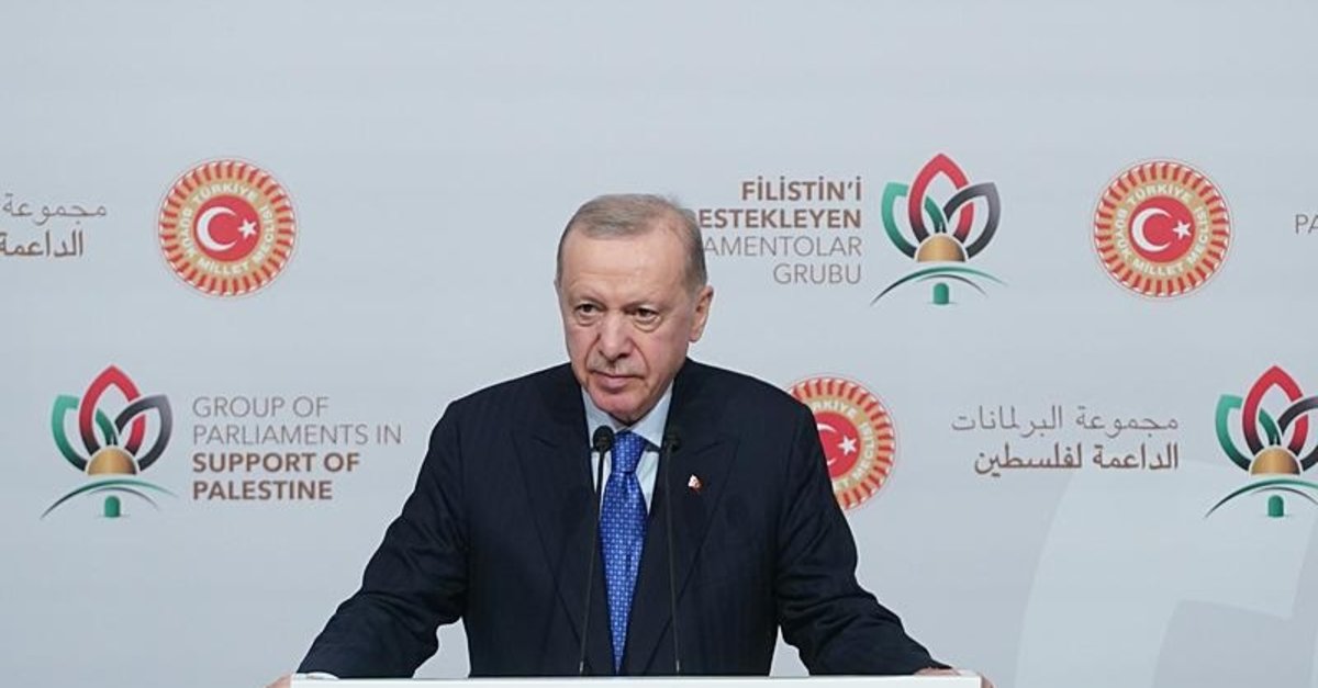 Konuşmasına, tarih boyunca nice medeniyetlerin beşiği olmuş, nice peygamberlere ev sahipliği yapmış Filistin'in sesi olmak için bir araya geldiklerini belirterek söze başlayan Erdoğan, bugün sadece bir beldeyi ve halkı değil, aynı zamanda adaleti, barışı ve direnişi savunmak için buluştuklarını ifade etti. Meclis Başkanlarını, "Medeniyet, tarih ve kültür şehri İstanbul'a hoş geldiniz" diyerek selamlayan Erdoğan, Filistin'i Destekleyen Parlamentolar Grubunun her bir mensubuna yürekten teşekkür ettiğini dile getirdi. Erdoğan, "Burada şu gerçeği tekrar hatırlatmak isterim; Filistin davasını savunmak sadece mazlum bir halkı savunmak değildir. Filistin'i savunmak, insanlığı, barışı ve adaleti savunmaktır" dedi.