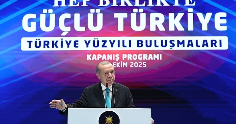 Barış, huzur ve istikrar denince akla ilk Türkiye'nin geldiğini kaydeden Erdoğan, "Türkiye dış politikası ile demokrasisi ile savunma sanayi ile ekonomisi ile içeride ve dışarıda attığı kararlı adımlarla artık küresel bir güce dönüşüyor. Bugün barış, huzur denince, istikrar denice akla ilk Türkiye geliyor. Sahada ve masada güçlü Türkiye gerçeğini dost düşman fark etmeksizin bugün herkes kabul ediyor. Suriye'den Gazze'ye, Körfez'den Rusya - Ukrayna arasındaki çatışmalara kadar hiçbir yerde Türkiye'siz bir denklem kurulamıyor. Artık hem bölgesinde hem dünyada sözüne itibar edilen çevresine huzur ve istikrar ihraç eden bir Türkiye var. Türkiye Yüzyılı'na giden yolda dönülmesi gereken kavşakların en başında yarım asırlık terör musibetinden ülkemizi kurtarmak yer alıyor. Ortak bir iradeyle inşallah önce terörsüz Türkiye'yi, ardından da terörsüz bölgeyi en kalıcı eserimiz olarak bu ülkenin evlatlarına kazandıracağız" diye konuştu.