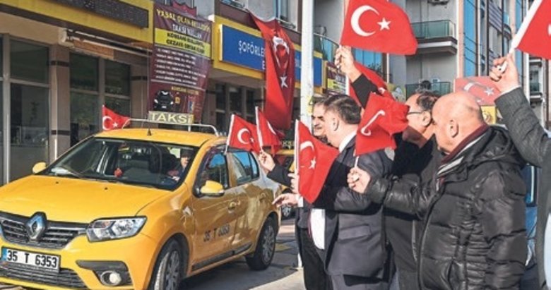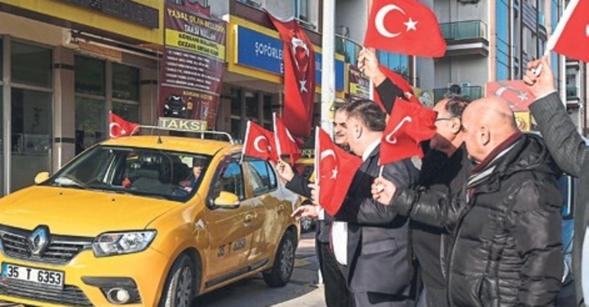 İzmir Şoförler ve Otomobilciler Esnaf Odası binası önünde bir araya gelen taksiciler, oda binası ve taksilerine Türk bayrakları astı. İzmir Şoförler ve Otomobilciler Esnaf Odası Başkanı Erkan Özkan, gazetecilere, milli birlik ve beraberlik duruşunu sergilemek amacıyla toplandıklarını söyledi.
