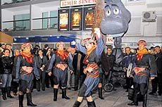 Film gösteriminden önce sahneye çıkan sanatçılar İzmir'de bulunmanın ve galayı burada gerçekleştirmenin mutluluğunu seyircilerle paylaştılar. "Bu film İzmir'in filmidir" diye konuşan yönetmen Yüksel Aksu, Konak Belediye Başkanı Dr. Hakan Tartan'ın babası, tiyatro sanatçısı Fikret Tartan'ın öğrencisi olduğunu belirtti ve "Sinemacı olmaya karar verdiğim salonda filmimizin galasını gerçekleştiriyoruz. Bundan kıvanç duyuyorum. Salonda üniversiteden hocalarımı görüyorum ki bu filmin mimarı onlardır. Başından beri desteğini esirgemeyen, bakan kimliği, belediye başkanlığının ötesinde bizim ağabeyimiz olan Dr. Hakan Tartan'a teşekkür ediyorum" dedi. Konak Belediye Başkanı Dr. Hakan Tartan sanatın aydınlanma penceresini araladığını vurguladı ve şöyle konuştu: "Toplumların aydınlanmasında en temel faktör, kültür ve sanattır. İnsanlar kültür ve sanatla ne kadar aydınlanırsa gelecek de o kadar ışıklı olur. Yüksel Aksu imzasını taşıyan 'Dondurmam Gaymak'ı defalarca izlemiştim. Çevreci kimliği, doğa tutkusuyla öne çıkan 'Entelköy Efeköy'e Karşı' ile yine muhteşem bir film ortaya çıktığına inanıyorum."