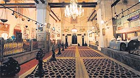 Müzede şu an sergilenen ve zamanında Mevleviler tarafından kullanılan el yazması Kur'an-ı Kerim'ler, hem nemden etkilenmesin hem de güveler yemesin diye mum isi ile yazılmış. Bu sayede 11. yüzyıldan bu yana dergahtaki birçok Kur'an-ı Kerim bugün bile hala bozulmadan durabiliyor. Ayrıca müze içine örümceklerin girmemesi ve yuva yapmaması için müzenin muhtelif yerlerine devekuşu yumurtaları asıldı. Bu yumurtalar sayesinde müzenin içine örümcek giremiyormuş. Müzede ayrıca asılı duran sabır taşları da çok dikkat çeken eserlerden. Büyük bir sabırla mermerden oyularak yapılan bu sabır taşlarında ek yeri yok. Bir kişinin çocuk yaşta başladığı sabır taşını, ancak torununun bitirmeye ömrünün yettiği rivayet ediliyor. Bu taşları, yıllar önce öğrenciler görüp motive olsun diye medreselerin girişine asarlarmış.