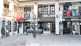 Odunpazarı evleri arasında dolaşırken, küçük bir meydanda, söğüt ağacının altındaki renkli masa örtüleri dikkatimi çekti. Bakır sinilerle dekore edilen çardak kısmında bir çay molası verdim. Restoran olarak işletilen iki katlı tarihi evin sahibi İzmirli bir kadın girişimciymiş. Kendisiyle sohbetimizde, İzmir mutfağını burada oluşturduğunu, ürünlerin çoğunu İzmir'den temin ettiğini anlattı. Eskişehirliler bizzat kendisinin yaptığı yemekleri, kahvaltılık reçelleri çok sevmişler. Bu arada bana da sakızlı muhallebi ikram etti, gerçekten nefisti. Cadde üzerindeki tarihi konaklar Büyükşehir Belediyesi tarafından restore edilmiş. Bu binalarda, Çağdaş Cam Sanatları Müzesi, Kent Tarihi Müzesi ve Balmumu Heykeller Müzesi yer alıyor. Ayrıca, bir bina da turistik otel olarak hizmet veriyor.