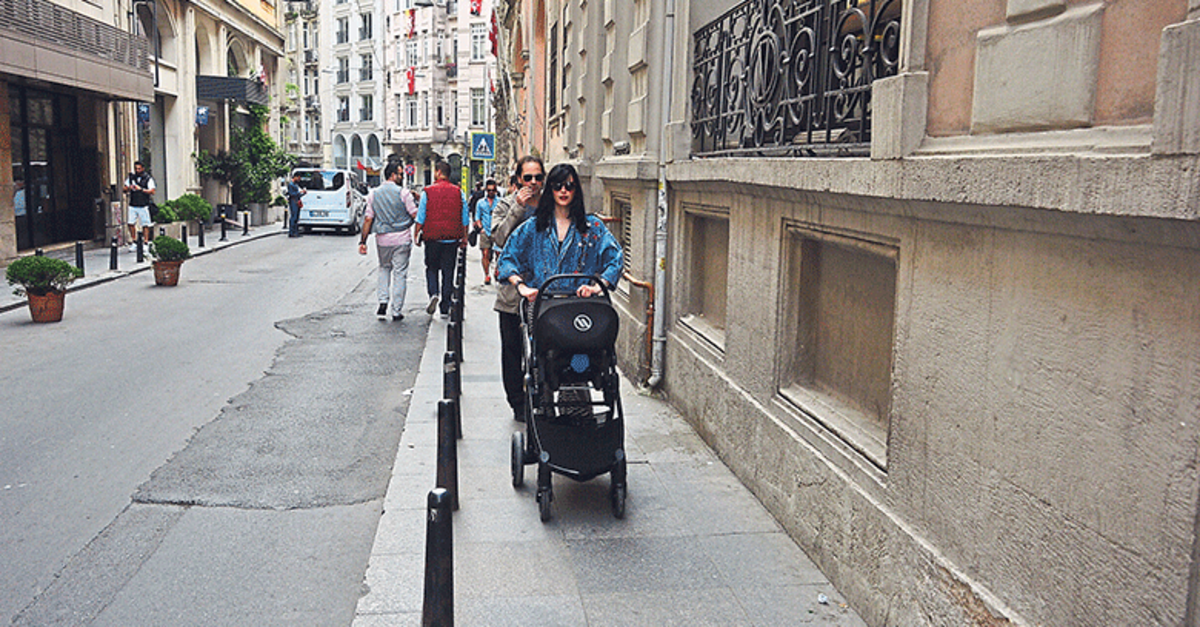 Fotoğraflarının çekilmesiyle kendisini bebek arabasını süren eşinin arkasına atan Tangöze, görüntü vermek istemese de fotoğraflanmaktan kurtulamadı.