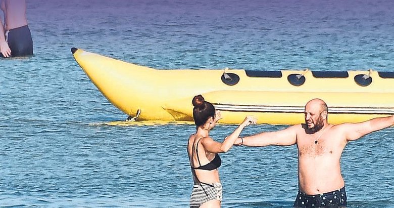 SEVGİLİSİNİN ısınması için çözümü zeybek oynamakta bulan Keskin, denizin ortasında kollarını kaldırıp oynamaya başladı. Sevgilisine eşlik eden Meriç Aral ise hem eğlendi hem de ısınmış oldu. Yaklaşık 4 yıllık birliktelikleri bulunan ikilinin, hala ilk günkü gibi aşk dolu halleri de dikkatlerden kaçmadı. Denize girerken birbirlerine sarılıp öpen Aral ve Keskin, suyun içinde de aynı yakınlığı göstermekten çekinmedi. ERCAN AKGÜN