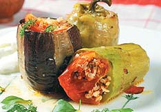 Hemen her sebzeden yapılan dolma, yaz aylarında yoğurt eşliğinde ikram edilerek mönüde iyi bir seçenek oluyor. Domates, patates, kabak, patlıcan, biber, soğan gibi sebzelerin yanı sıra yumurta dolması gibi değişik stillerde de yapılabilen bu yemek, farklı sebzelerden yapılıp bir arada pişirilince tadı daha da güzel oluyor. Bu yüzden size bugün karışık dolma tarifi yazıyorum. Karışık dolma için önce kıyma, yemeklik doğranmış soğan, domates, biber salçası, pirinç, ince kıyılmış maydanoz, dereotu, tuz ve karabiberi karıştıralım. Kabak ve patlıcanları ortadan ikiye kesip içlerini oyalım. Kırmızı biber ve dolmalık biberlerin baş kısımlarını keselim ve çekirdeklerini çıkaralım. Domateslerden kapak kesip içini oyalım ve etli harcın içine katalım. Hazırladığımız kıymalı harçla sebzelerin içlerini dolduralım. Yaprakları saralım. Tencerenin dibine kabak ve patlıcanların iç harcından yayalım. Dolmaları tencereye yerleştirelim. Margarini ve dolmaların üzerine çıkacak kadar su ekleyip kısık ateşte 20-25 dakika pişirelim. Daha sonra sıcak olarak servis yapalım. Afiyet olsun.