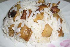 Saray mutfağının demirbaşlarından biri de patlıcanlı pilav. Sultanların sofralarını süsleyen leziz ve göze hitap eden bu pilava isteğinize göre tavuk da ekleyebilir ve daha doyurucu bir hale getirebilirsiniz. Patlıcanlı pilav için öncelikle patlıcanları alacalı soyup fındık büyüklüğünde doğrayın. Sonra bu patlıcanları bol tuzlu suya atarak yarım saat bekletin. Sudan çıkarıp, parçalamadan sıkarak acı sularını çıkarın. Bol suda yıkayıp, süzülmeleri için bir kevgirde bırakın. Bir tavada kızartma yağını kızdırıp, kuruladığınız patlıcanları bu yağda hafif pembemsi bir renk alana kadar kızartın. Diğer taraftan pirinci ayıklayıp yıkayın. Üzerini geçecek kadar kaynar su koyup tuz ilave ederek, 20- 25 dakika ıslatın ve süzün. İki bardak suyu, tuzu ve margarini bir tencereye koyup kaynatın. Su kaynayınca pirinçleri ilave edip bir defa karıştırın ve önce kuvvetli, daha sonra kısık ateşte pirinçler suyunu çekinceye kadar kaynatın. Pilav suyunu çektikten sonra patlıcanları ilave ederek karıştırın. Yarım saat kadar dinlendirdikten sonra üzerine bir miktar nane ilave edip servis yapın. Afiyet olsun.