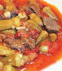 Şimdi bamyanın tam mevsimi. Özellikle semt pazarlarında, köylü teyzelerin civar ilçelerden getirdiği muhteşem lezzetteki bamyaları kaçırmayın derim. Hazır mevsimi gelmişken size bir etli bamya tarifi yazmak istedim. Dilerseniz etsiz de yapabilirsiniz. Etli bamya içib önce bamyaları yıkayıp kurulayalım. Sap kısmını bir keskin bıçakla huni veya külah gibi incecik alalım. Lezzeti içine de alması için uçlarından da biraz keselim. Uçlarını kestikten sonra bir kez daha yıkayıp suyunu süzelim. Bamyaları 2 çorba kaşığı tuz ve 1 çay bardağı sirkeyle katıştırıp bir kenarda bekletelim. Yemeklik doğradığımız soğanı, yarım paket margarini ve eti tencereye koyup kavuralım. Sirkede beklettiğimiz bamyaları bol suda yıkayıp süzelim. Bamyayı, kabuklarını soyup kuşbaşı doğranmış domateslerle birlikte karıştırıp ete katalım. Suyunu ve tuzunu ayarlayın. Bir limon suyunu, eğer limon büyükse yarısını etli bamyaların üzerine sıkalım ve hafif ateşte pişirelim. Et ve bamya kıvamında pişince servis yapalım. Afiyet olsun.