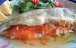 Çok lezzetli bir balık tarifi olan balık sarma için tek kişilik malzeme listesi paylaştım sizinle. Kaç adet yapacaksanız malzemede ona göre bir düzenleme yaparak sayıyı artırabilirsiniz. Gelelim yemeğimizin tarifine. İlk olarak balığın içini temizleyelim. Pullarını iyice kazıyıp tüm yüzgeçlerini keselim; yıkayıp süzelim. Yoğurt ile salçayı bir kapta iyice çırparak karıştırırken içine yavaş yavaş zeytinyağı dökelim. İstediğimiz ölçüde, tuz, karabiber ve kekiği bu karışımın içine ilave edelim. Balığın hiçbir yeri dışarıda kalmayacak şekilde paket yapabileceğimiz bir alüminyum folyoyu tezgahımıza serelim. Folyo üstünde balığı koyacağımız yere, yaptığımız karışımdan kaşıkla koyalım. İki defne yaprağını balığın karnına koyduktan sonra balığı yaydığımız karışım üstüne boylu boyunca yatıralım. Karışımın geri kalanını da balığın üstüne dökün ve hiçbir yerinde boşluk kalmayacak şekilde sıvayalım. Daha sonra, balığı alüminyum folyo ile güzelce sarıp paketleyelim. Burada püf noktası alüminyum folyonun hiçbir yerden hava kaçrımamasını sağlamak. Paketlerken boşluk bırakmamaya ve pişerken buhar kaçırmamasına özen gösterelim. Daha sonra tepsiye koyduğumuz balığı 220 derecede iyice kızdırılmış fırında, 10-15 dakika pişirelim. Fırından çıkardığımız balığın folyosunu üstten keserek yarım açıp servis tabağına alalım. Afiyet olsun.