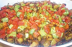 Ön hazırlık olarak soğanı ayıklayıp, küp küpler doğrayalım. Patatesin kabuklarını soyalım. Havucu kazıyalım. Her iki sebzeyi de iri zar biçiminde doğrayalım. Bezelyeyi ayıklayalım. Havuç ve bezelyeyi, içine biraz tuz atılmış bol suda haşlayalım. Sebzeler daha diri iken kabı ateşten alalım ve sebzeleri bir süzgece aktarıp sularını iyice süzdürelim. Yağın üçte birini orta boy bir tencerede, orta ateşte eritelim. Yağ kızmaya başlayınca önce patatesleri koyalım. Bir kevgirle sık sık karıştırarak birkaç dakika patateslerin dışı sert bir kabuk bağlamaya başlayıncaya kadar kızartalım. Daha sonra patatesleri, yağını süzdürerek başka bir kaba alalım. Aynı yağda hafifçe haşlanmış havuç ve bezelyeyi de kızartalım. Sebzeleri kızarttıktan sonra yağlarını süzdürüp, patateslerin bulunduğu kaba aktaralım. Kalan yağı, orta boy bir tencerede orta ateşte eritelim. Yağ kızınca kuşbaşı doğranmış kuzu etini ilave edelim. Ateşi açalım ve etler pembeleşinceye kadar sote edelim. Soğanı tenceredeki etlere ilave edelim. Yine ara sıra karıştırarak, birkaç dakika daha pişirelim. Tuzunu ve biberini serpelim; sebzeleri katalım. Suyunu ilave edip, bir taşım kaynatalım. Baharat torbasını ilave edin. Ateşi kısalım. Tencerenin kapağını sıkıca örtelim. Kebabı, ağır ateşte 25-30 dakika, etler yumuşayıncaya kadar pişirelim. Bu süre içinde, ara sıra tencerenin kapağını açıp, etlerin pişip pişmediğini kontrol edelim. Piştiği gibi sıcak olarak servis edelim. Afiyet olsun.