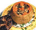 Tam b,r kış yemeği olan başkabağı güveç için kıÜüabağın sap kısmından yuvarlak bir kapak keselim. Çıkan kapağı kenara koyup çekirdeklerini ve liflerini temizleyelim. Kabağı bir fırın tepsisine yerleştirdikten sonra içini dolduracak kadar kaynar su ekleyelim. Sonra ayırdığımız kapak kısmını üzerine kapatıp yumuşayıncaya kadar yaklaşık 2 saat pişirelim . Piştikten sonra suyunu bir kepçe ile alalım. Dış kabuğuna zarar vermeden büyük bir kaşıkla kabağın içini çıkartalım ve bu içleri miksere koyup püre yapalım Listemizdeki tüm sebzeleri küp şeklinde doğrayalım. Bir tencerede tereyağını kızdırıp arpacık soğanlarını bütün olarak pembeleştirelim. Pırasaları ve sarımsakları ilave edip ara sıra karıştırarak 5 dakika hafif ateşte yumuşayıncaya kadar pişirelim. Unu ilave edip karıştırarak köpürene kadar 2 dakika pişirelim. Tavuk suyunu, doğranmış tavuk göğsünü ve kabak püresini ayrı bir tencereye koyalım. Küp küp doğrayıp suya koyduğumuz kerevizleri süzüp, tuz, pulbiber ve karabiberle birlikte tencereye ilave edelim. Kaynadıktan sonra 20 dakika hafif ateşte pişirelim. Kereviz sapları ve şalgamları da katıp 20 dakika daha pişirelim. Domates, kabak küpleri ve kekiği ilve edip 10 dakika pişirelim. Ocaktan alınca limon suyunu ilave edelim. Güvecin içine doldurarak servis yapalım. Afiyet olsun.