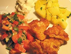 Balığı pek çok farklı stilde pişirebiliriz ancak tavada balığın tadı bir başka oluyor. Her ne kadar sağlık açısından düşünüldüğünde cazip olmasa da bu stilde pişen balık daha bir lazzetli oluyor sanki. (Ya da bana öyle geliyor) Tavada balık pişirmenin bazı püf noktaları var. Unlama, dikkat edilmesi gerekenlerin başında geliyor. Çünkü balığın lezzetini ciddi anlamda etkiliyor. Peki doğru olan nedir? Hemen söyleyelim; un mutlaka elenmelidir. Çünkü unlamanın amacı, balığın lezzetli etinin kızgın yağda kavrulmasını önlemektir. Un fazla gelirse ya da unda topaklanma varsa balığın da lezzeti bozulur. O yüzden unu mutlaka elemeli; balık üzerindeki fazla unu da silkerek fazlalığı almalısınız. Yağın, aşırı kızgın veya yanmış olmamasına da özen gösterirseniz balığınızı mükemmel bir tat ile sofranızda koyabilirsiniz. Gelelim yemeğimize... Balık pane için mezgitlerimizi fileto şeklinde hazırlayalım. İyice yıkadıktan sonra kurumaya bırakalım. Daha sonra üzerlerine tuz ve biber serpelim. Yumurtaları bir kapta çırpıp rendelenmiş kaşar peynirini ilave edelim ve iyice karıştıralım. Tuz ve biberlenmiş filetoları, önce beyaz una, ardından da kaşarlı yumurtaya ve son olarak da galeta ununa bulayıp tavada kızgınlaştırılmış tereyağına atalım. Dilerseniz ayçiçek yapı da kullanabilirsiniz. Her iki tarafı da koyu sarı bir renk alıncaya kadar kızartalım ve daha sonra servis yapalım. Afiyet olsun.