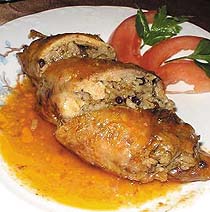 Bugün yapımı biraz zahmetli olan bir yemeğin tarifini paylaşıyorum sizinle. Adı piliç Topkapı. Yoğun çalışanlar pek fırsat bulamıyor belki ama arada bir sofraları zenginleştirmekte yarar var diyerek tarifimize geçiyorum. İlk olarak dolmalık fıstıkları kavuralım ve üzerine soğanı ekleyelim. Bir süre kavurduktan sonra pirinci ve kuş üzümünü de ekleyerek karıştıralım ve tuzunu ayarlayıp suyu ekleyelim. Kapağı kapalı kısık ateşte pişirin. Pilav piştikten sonra dereotunu ince doğrayarak üzerine ilave edelim. Sos için 1 çorba kaşığı salçayı sıvı yağda kavuralım, üzerine minik doğranmış domatesi ve fesleğeni ekleyelim. Kıvamını biraz su ile açarak tuzunu ve baharatını ayarlayalım. Tavuk butlarını kemiklerinden sıyırarak kemiğinden koparmadan et döveceği ile inceltelim. Hazırladığımız pilav harcı, tavuk butlarına saralım. 180 derecede pişirdikten sonra tabağa alalım. Sosu, servis tabağına döküp dilimlediğimiz tavuk butlarını sosun üzerine yerleştirerek taze fesleğen eşliğinde servis yapalım. Afiyet olsun.