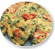 Besin değeri bakımından oldukça zengin bir yemek olan sebzeli yumurta için maydanoz ve taze soğanı ayıklayıp yıkadıktan sonra ince ince kıyalım. Dolmalık biberi ikiye bölüp, çekirdeklerini çıkarıp küp şeklinde doğrayalım. Mantarları temizleyelim, büyük olanları dörde bölelim. Havuçları soyup ince ince dilimleyelim. Bezelyeleri tuzlu suda 15 dakika haşlayıp süzelim. Makarnaları kaynar suda 8 dakika haşlayıp hemen soğuk suya tutalım ve 1 yemek kaşığı yağ ile tencerede 2-3 dakika kızartıp süt ile kaynatalım. Bezelyeleri, mantarları ve soya filizlerini ilave edip 5-6 dakika pişirelim. Krem şanti ve yumurtaları tuz ve köri ile iyice çırparak karıştıralım. 20 santim çapında teflon tavaya, yumurtalı karışımın dörtte birini dökelim, yarısına makarnanın dörte birini koyup 2 dakika pişirelim. Omleti dikkatlice çevirip 2 dakika daha pişirelim. Bu şekilde toplam 4 omlet pişirdikten sonra omletleri sebzeler, maydanoz ve taze soğan ile süsleyerek sıcak olarak servis yapalım. Afiyet olsun.