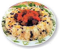 Saray pilavı için; pirinçleri ılık tuzlu ve limonlu suda yarım saat bekletelim. Bademleri sıcak suda 5 dakika kadar bekletip kabuklarını soyalım. Pirinçleri, nişastası gidene dek birkaç su yıkayıp iyice süzelim. Tencereye sıvıyağı alıp bademleri ekleyerek hafifçe pembeleşene dek kavuralım ve delikli kepçe ile alıp bekleteAynı tencereye pirinçleri ekleyip şeffaflaşana dek kavurarak kuşüzümlerini, bademleri ve sıcak suyu katalım. Tuzu ayarlayarak, pirinçler suyunu çekene dek ağır ateşte pişirelim. Diğer yandan köfte için bir kabın içine kıymayı, bayat ekmek içini, tuzu, baharatları, rendelenmiş soğanı ekleyip iyice yoğuralım ve yuvarlak köfteler yapalım. Tavaya sıvı yağı alıp kızdıraköfteleri ekleyelim. Tavayı sallayarak köfteleri arkalı önlü kızartıp kapaklı bir kapta bekletelim. Pilavı 20 dakika demlendirelim. Sos için bir tavada rendelenmiş domatesleri ve dövülmüş saımsakları alıp birkaç dakika (domatesin suyu çekilene kadar) pişirelim. Sıvı yağı ve salçayı ekleyip yarım dakika daha pişirerek sosu ateşten alalım. Tuzla ketçabı da ekleyerek karıştıralım. Demlenen pilavı, ortası debir kek kalıbına bastırarak yerleştirelim. Kalıbı ters çevirerek pilavı servis tabağına çıkaralım. Orındaki boşluğa köfteleri yerleştirelim, üzerine domates sosunu gezdirip servis yapalım. Afiyet olsun.