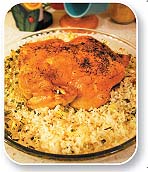 Bir tencereye, rendelediğimiz domatesleri ve yağı koyup birlikte pişirelim. Üzerine yıkadığımız pirinçleri ilave edip yaklaşık 5 dakika kavuralım. Başka bir tencerede, kuşbaşı doğradığımız tavukları tuz ilave ederek kavuralım. Tavuklar suyunu bırakıp çekene kadar pişirmeye devam edelim. Ardından karabiber ve isteğe bağlı olarak diğer baharatlareı ekleyelim. Tavukların tamamını alacak büyüklükte bir borcama tavukları koyalım. Sonra da fırına koyacağımız tepsimizin tam ortasına ters çevirelim. Kenarına da kavurduğumuz domatesli pirinçleri yerleştirelim. 2 su bardağı suyu da koyduktan sonra 180 dereceli fırında pirinçler suyunu çekene kadar pişirelim. Afiyet olsun.