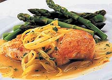 Portakal, mandalina ve limon, yemeklere hem hoş hem de farklı bir aroma veriyor. Özellikle zeytinyağlı yemeklerde sıklıkla kullanıldıklarını söylersek yanlış olmaz. Eğer denemediyseniz, mutlaka öneririm. Gelelim yemeğimizin tarifine. Limonlu tavuk için ilk olarak piliç göğsünü bir tokmakla iyice döverek, inceltelim. Bir kağıdın üzerine biraz un dökelim. Piliç göğsünü arkalı önlü una bulayalım ve bir tavaya tereyağını (ağır geliyor diyorsanız sıvı yağ da kullanabilirsiniz) alıp hafifçe kızdıralım. Tavuk göğsünü tavaya koyalım ve limon kabuğu rendesiyle limon suyunu ekleyelim. Üzerine iki çorba kaşığı kremayı dökelim ve birlikte, kaynayana kadar pişirelim. Kaynadıktan sonra tavuk göğsünü ayrı bir tabağa alalım ve üzerine bir dilim ince dil peyniri koyalım. Peynirin üzerine renk vermesi için biraz kırmızı biber serptikten sonra fırına verelim. Peynirler eridiği gibi tavukları fırından çıkaralım ve tavada bıraktığımız sıcak kremalı sosu üzerine dökelim. İnce ince doğradığımız maydanozları tavuğun üzerine serpelim. makarna ya da pilav eşliğinde servis yapalım. Afiyet olsun.