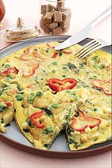 Sebzeli omlet için ilk olarak maydanoz ile taze soğanı ayıklayıp yıkayalım ve ince ince kıyalım. Dolmalık biberi ikiye bölüp, çekirdeklerini çıkarıp küp şeklinde doğrayalım. Mantarları temizleyelim, büyük olanları dörde bölelim. Havuçları soyup ince ince dilimleyelim. Bezelyeleri tuzlu suda 15 dakika haşlayıp süzelim. Makarnaları kaynar suda 8 dakika haşlayıp hemen soğuk suya tutalım ve 1 yemek kaşığı yağ ile tencerede 2-3 dakika kızartıp süt ile kaynatalım. Bezelyeleri, mantarları ve soya filizlerinide ilave edip 5-6 dakika pişirelim. Krem şanti ve yumurtaları tuz ve köri ile iyice çırparak karıştıralım. 20 santim çapında teflon tavaya, yumurtalı karışımın 1/4'ünü dökelim, yarısına makarnanın 1/4'ünü koyup 2 dakika pişirelim. Omleti dikkatlice çevirip 2 dakika daha pişirelim. Bu şekilde toplam 4 omlet pişirelim. Omletleri sebzeler, maydanoz ve taze soğan ile servis yapalım. Afiyet olsun.