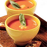 Fesleğenli domates çorbası için fırını 200 dereceye ayarlayalım. Domatesleri ve soyulmamış sarımsağı kızdırılmış tava üzerine yayalım. Yağı ve sirkeyi karıştırıp domateslerin üzerine serpelim ve ardından esmer toz şekeri üzerine ekleyelim. Domatesler yumuşayıp kömürleşmeye başlayıncaya kadar önceden ısıtılmış fırında 20 dakika pişirelim. Fırından domatesleri çıkarıp soğumaya bırakalım. Soğuduktan sonra domates ve sarımsakların kabuklarını soyalım. Daha sonra da domatesleri bir kevgire koyup, sos tavasının üzerine yerleştirelim. Sarımsak ve domatesleri tahta bir kaşığın ters yüzüyle bastırarak kevgirden geçirelim. Hepsi kevgirden geçirildikten sonra domates ezmesini ve sebze suyunu ekleyelim. Daha sonra düşük ateşte karıştırarak pişirelim. Diğer yandan küçük bir kapta yoğurt ve fesleğeni karıştıralım; biber ve tuzla tatlandıralım. Yoğurtlu fesleğini çorbaya dökelim ve fesleğen yapraklarıyla süsleyerek servis yapalım. Afiyet olsun.