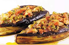 Tavuklu karnıyarık için patlıcanları alacalı soyup karnıyarık şeklinde keselim. Tuzlu suda bekletip yıkayalım ve kağıt havlu ile kurulayalım. Sıvı yağı tavada kızdırıp patlıcanları kızartalım. Kağıt havlu üzerine alıp fazla yağını çektirelim. Tavuk etlerini küp küp doğrayalım. Bezelyenin suyunu süzelim. Domateslerin kabuklarını soyup küçük küçük doğrayalım. Taze soğanları temizleyip kıyalım. Margarini tencerede kızdırıp taze soğanı sote edelim. Tavuk etlerini ekleyip kavuralım. Tuz ve karabiber serpelim. Domatesi ekleyip hafif koyu bir sos kıvamına gelinceye kadar pişirelim. Bezelyeleri de ekleyip karıştıralım. Birkaç dakika sonra ateşten alalım. Daha sonra patlıcanları tencereye dizelim. Her birinin kesik yerlerini açarak bezelyeli karışımı paylaştıralım. Salçayı yarım bardak suyla karıştırıp üzerine gezdirelim. Bir tutam tuz serpip kapağı kapalı olarak 10 dakika pişirelim. Dereotunu kıyıp karnıyarıkların üzerlerine serpiştirelim ve sıcak olarak servis yapalım. Afiyet olsun.